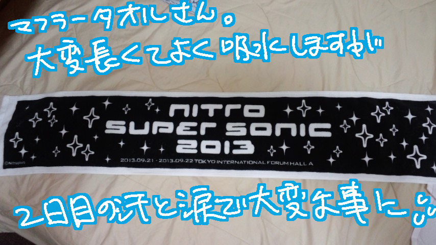 そんなこんなでニトロスーパーソニック2013、2DAY'Sで「うぉおおおおおおおお!」と叫ぶ、拳振り上げる、ペンライト振りまくる、涙とか汗とか鼻水とかあとなんか出ちゃいけない種類の汁を吹き出す等をし超満喫し、ライブ以外では東京観光やアメコミショップめぐり等も満喫してきた海鼠です、ただいまです。