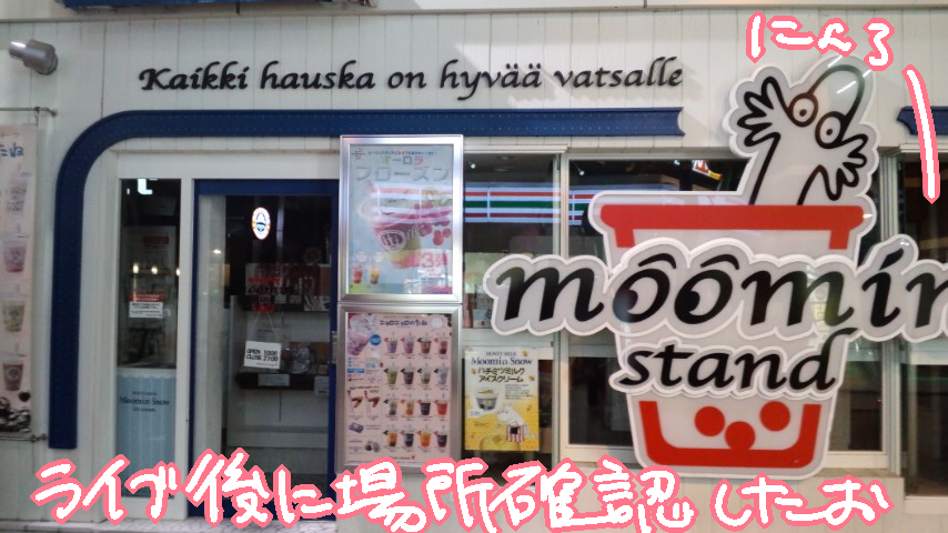 東京行きを伝えたところ友人藤真殿がムーミンムーミン言っていたので、ライブハウスとホテルのすぐ近くあったムーミンスタンドへ。