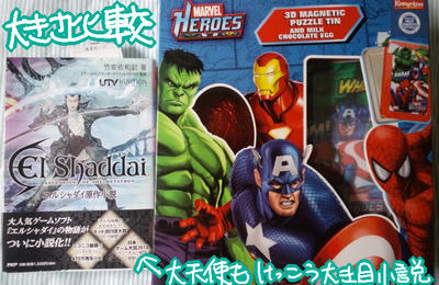 洗車してもすぐまた砂まみれになりそう…(´・ω・`) 届いた。 前回に続き筋肉マッソな写真集。 今回は大変好みに合う筋肉の魅せ方をしている写真集で正直買って正解でした(・∀・) 前回よりはライトだし極僅かだけど「アーッ!」なショットがあるじゃないかとか(∩゚д゚)アーアーきこえなーい あれよ、なんかキャッキャしてるマッソってだけよ。 水辺ではしゃぐ小学生低学年な小僧に置き換えてみ? 微笑ましかろう? その微笑ましい情景のままマッソに置き換えてみ? 微笑ましかろう? いやあ、本当に良い筋肉ラインでした。 翻訳版。 冒頭の話が既に出ている翻訳版の冒頭と被ってるんだけど、わざとかい? 出版社違ったっけ? …(確認中) ああ、先のが小学館集英社で今回のがヴィレッジブックスか。 なんか今回の分の発行予定見てたら5月はお財布が忙しそうです。 素敵です。 む、紫だったけ?(;´Д`) 青っぽかったような…紫であってたような…黒だったようなグレーだったような…あっれえ?(;´Д`) そうそう、JL。 PS3で「インジャスティス:神々の激突」が発売が6月に決まったようですね。 情報には疎い方なので、販売サイトにUPられてから知る人間なので「今更( ´,_ゝ`)プッ」とか突っ込んでくれますな。ちゃんと限定版予約したから( ´,_ゝ`)プッしてくれますな。 良かった、持ってるPS3で。 新機種じゃなくて本当に良かった(;´Д`) …PV動画の超人の目からビームカットで吹きだしたりなんかしてないんだから! 超人ェ…。 アベンジャーズのチョコが無事届いたので開封したら猫様がすかさずINしてきてホッコリした海鼠です、こんばんは。